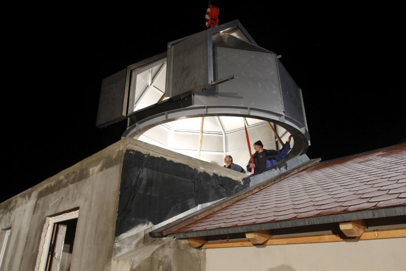 Kuppel & das 20 Zoll-Spiegelteleskop von Alluna werden montiert (Bild: Verein, 28./29. Oktober 2014)