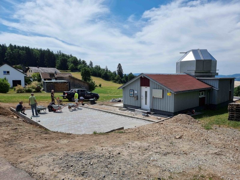 Das Gelände der Sternwarte Roßberg sieht immer professioneller aus (Verein, Sommer 2025).