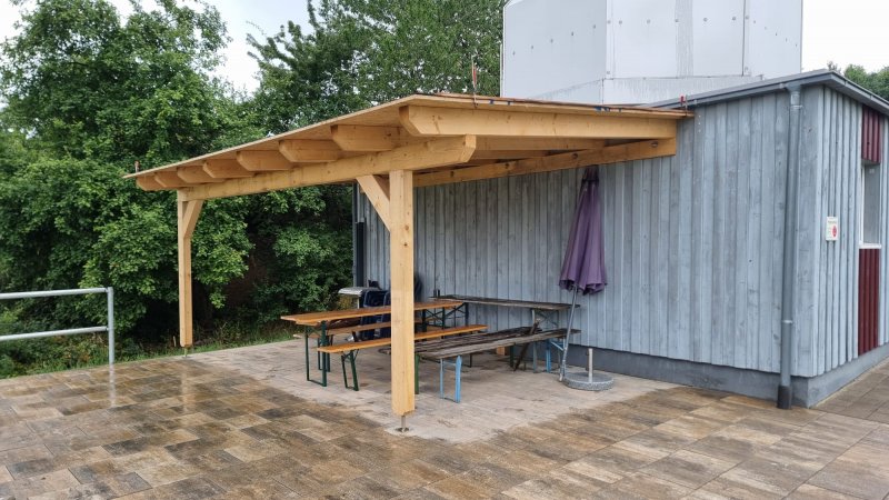 Noch rechtzeitig vor dem Herbstwetter konnte auch ein Unterstand auf der Beobachtungsterrasse errichtet werden, der den Hobby-Astronom*innen und deren Equipment bei zu starker Sonne oder einsetzendem Regen Schutz gewährt.